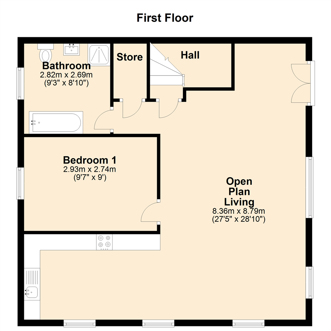 Internally, this property briefly comprises: First floor Entrance Hallway, Open Plan Living / Dining / Kitchen, Store, Bedroom 1, Bathroom.
