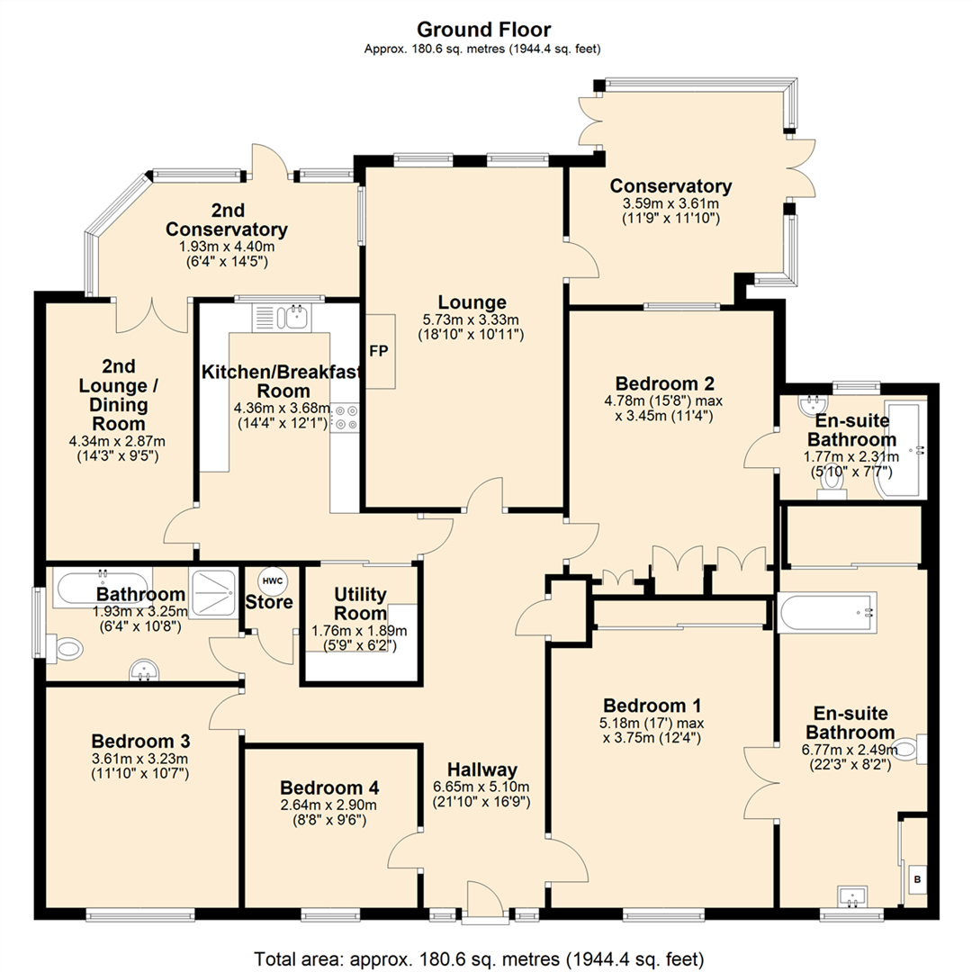 Internally, this property briefly comprises: Entrance Hallway with Store, Lounge, Conservatory, Breakfast Kitchen, 2nd Lounge / Dining Room, 2nd Conservatory, Utility Room, Bedroom 1 with En-Suite Bathroom, Bedroom 2 with En-Suite Bathroom, Bedrooms 3 & 4, Family Bathroom. Externally, to the front of the property is an ample expanse of block-paved, off road Driveway Parking while to the rear, there is a generous area of Decking with ramped access down to a lower area of low maintenance artificial lawn.